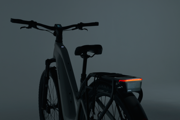 Integrates rear rack, lights, and radar to alert riders and vehicles approaching from behind via flashing lights, sound alerts, and display notifications for enhanced safety.